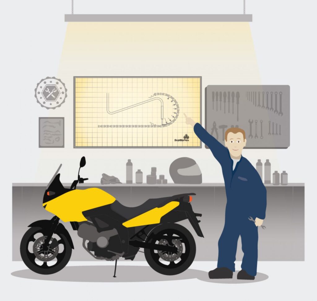 With a Scottoiler chain oiler system, you are always feeding just enough oil to your chain – in very small doses. This allows us to use a lubricant that has almost no tack additives and dirt and grit will not stick to your chain. A cleaner chain means your chain does not develop the black grinding paste. Your chain will last up to 7 times longer, plus you don’t need to manually clean and lubricate it every 300 miles.