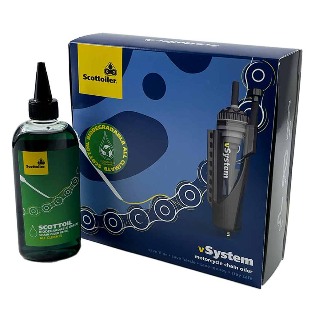 Scottoiler chain oiler products are the benchmark for motorbike chain lube systems and used by motorcyclists worldwide. Using a Scottoiler system means your chain is automatically lubricated while you ride, saving you time, money, and hassle on chain maintenance.