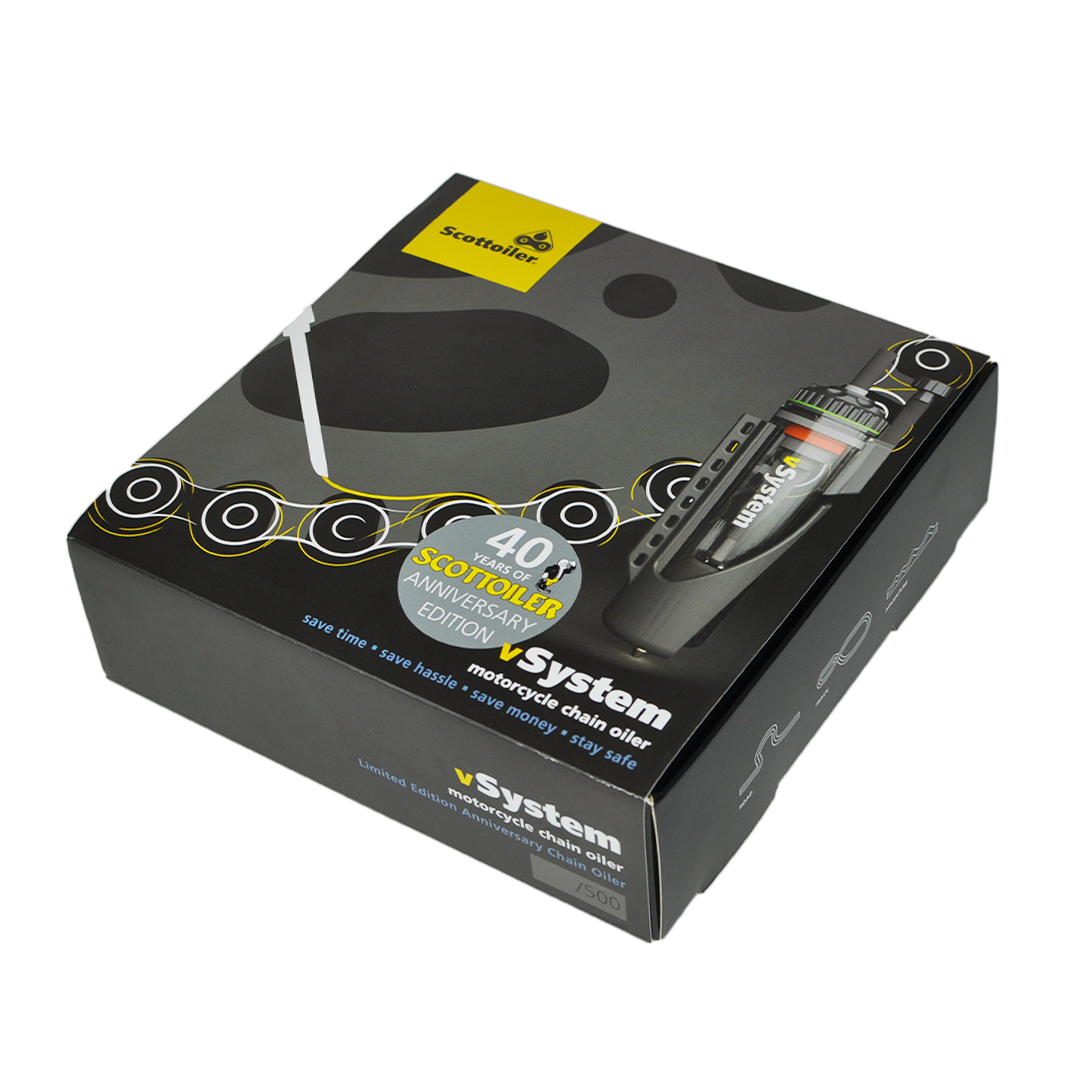 40 years after it was first launched we still make that very same vacuum operated chain oiler alongside a range of other innovative chain oiler solutions. In this, our 40th year, we are pleased to present the Special Edition 40th Anniversary vSystem that celebrates everything that has come before and brought us to where we are today.